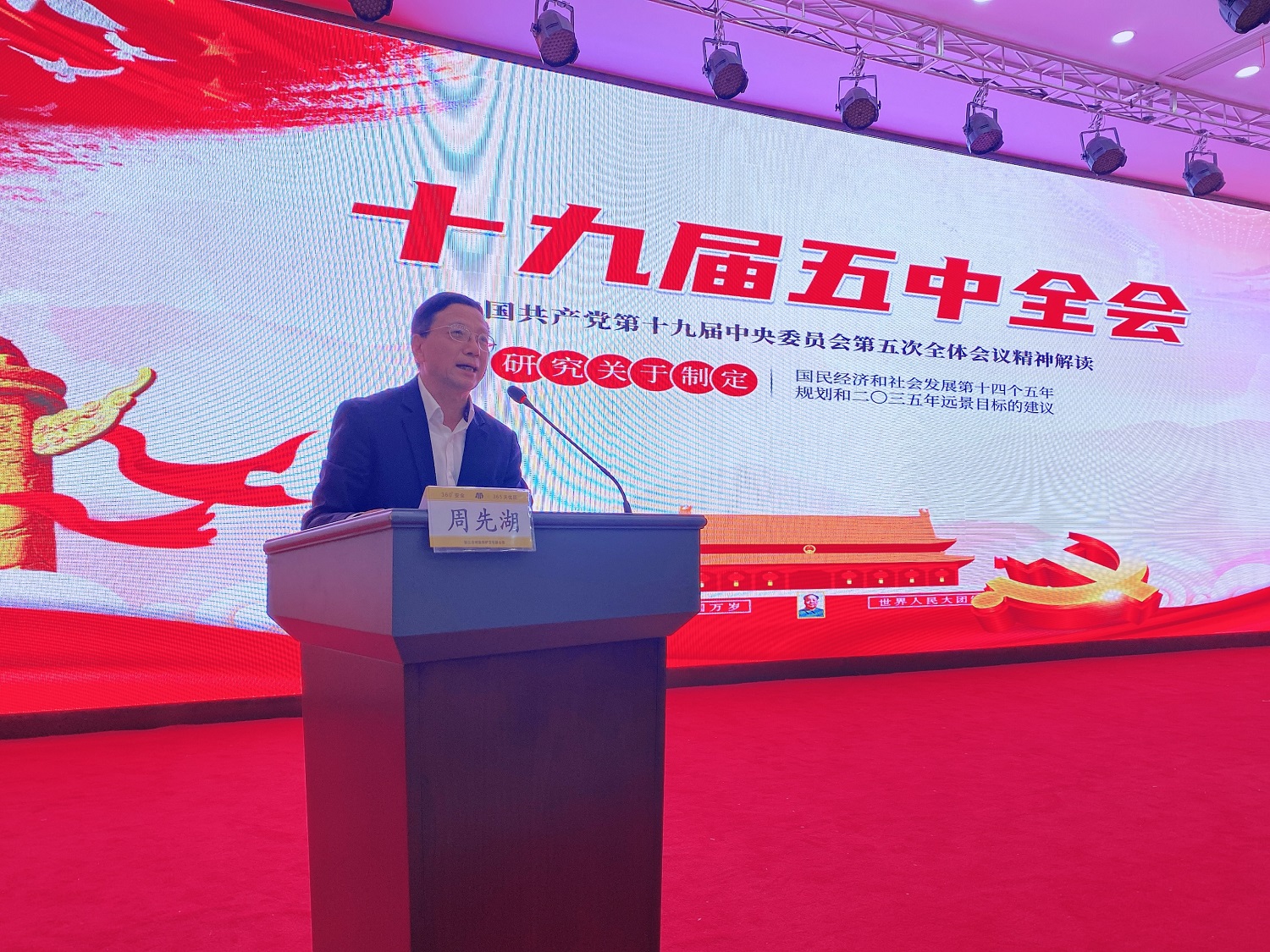 公司党委副书记、纪委书记周先湖对党的十九届五中全会精神进行了重点解读。全会深入分析了我国发展环境面临的深刻复杂变化,对“十四五”时期社会经济发展各项工作作出了重要部署并提出了2035年远景目标,为国有企业发展提供了强大的思想武器和行动指南。