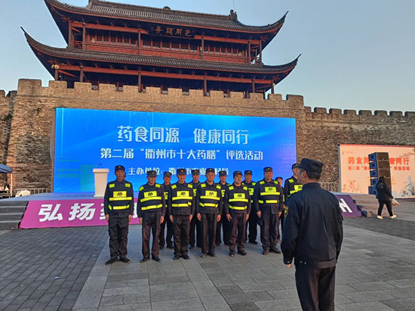 11月27日,“药食同源 健康同行”第二届“衢州市十大药膳”评选活动在水亭门城楼举行,受主办方邀请,浙江衢州星辉保安公司承担此次活动安保任务。活动前期,安保小组积极与主办方对接,在队伍组成上挑选临时安保任务经验丰富的队员,为活动的安全提供保障。