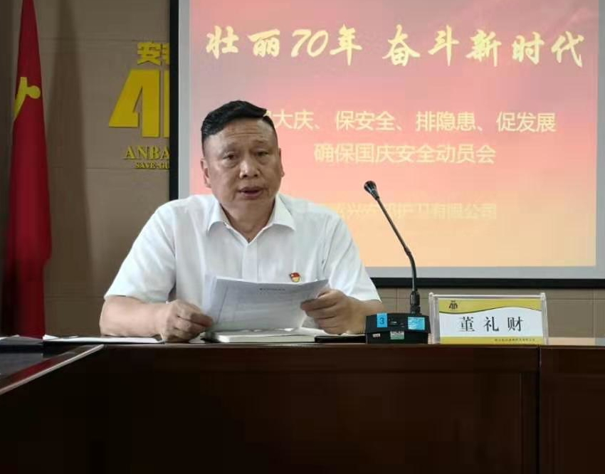 党委委员、纪委书记董礼财对“迎大庆、保安全、排隐患、促生产”专项活动进行具体部署,明确整治范围及内容,并要求做到五个管控,突出重点,落实措施,切实把安全生产抓紧、抓实、抓出成效。