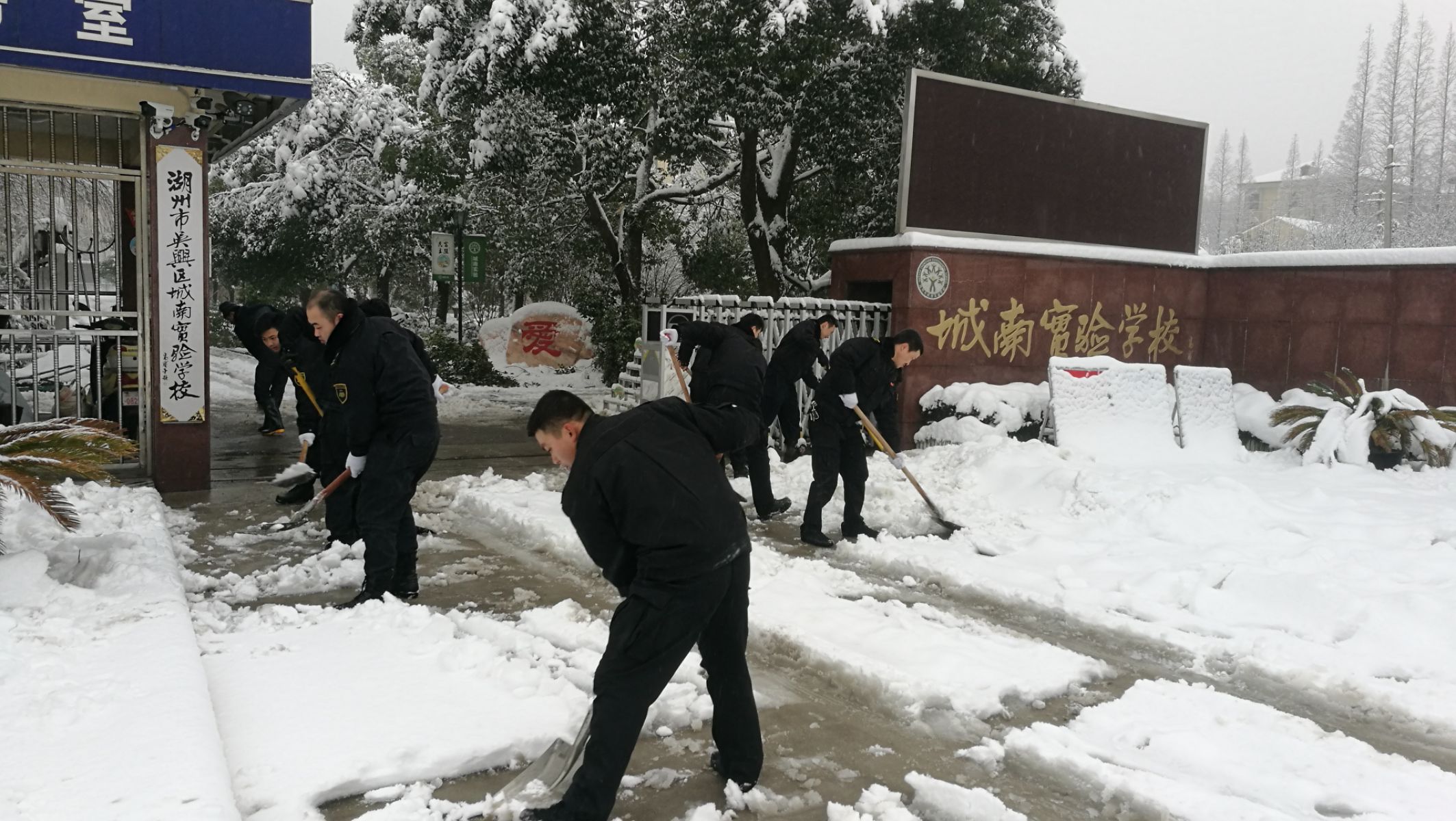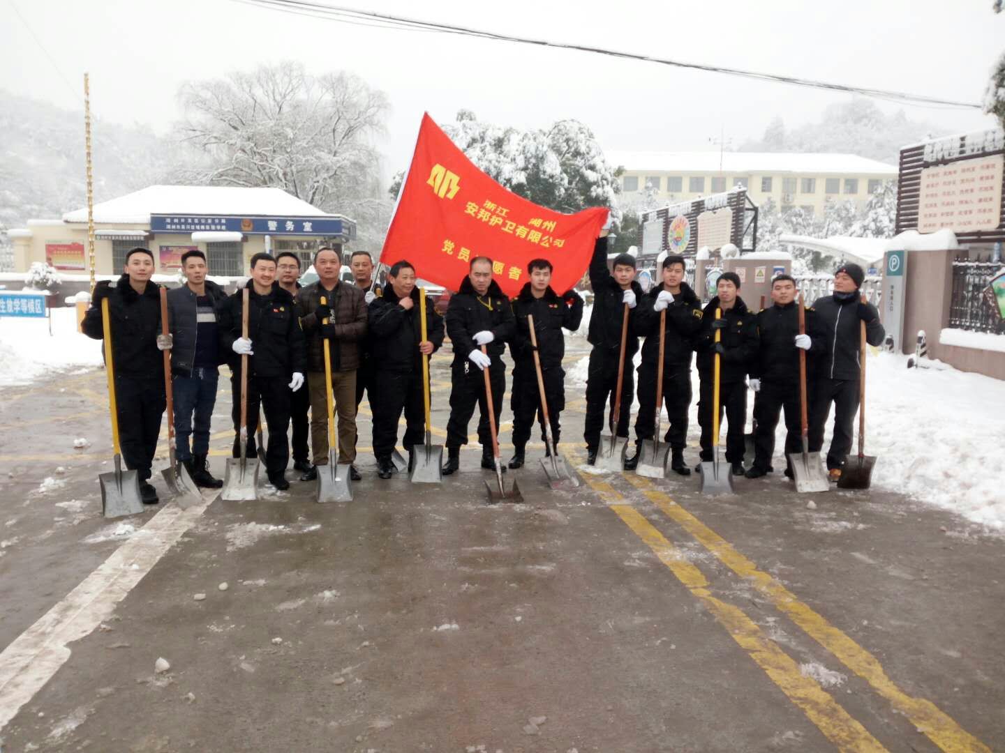 28日,强降雪刚结束,湖城又迎来了冰冻寒潮,气温在未来2天降至-7℃到-9℃,湖州市气象台发布了道路结冰橙色预警。公司在确保押运任务未因积雪冰冻受到影响的同时,还积极发挥党员干部和团员青年志愿者在防范抗击雨雪冰冻天气中的积极作用,组织大家迅速投入到“抗击冰雪、温暖寒冬”铲雪工作中,全体员工不畏严寒,不畏风雪,展现了星辉良好精神风貌。