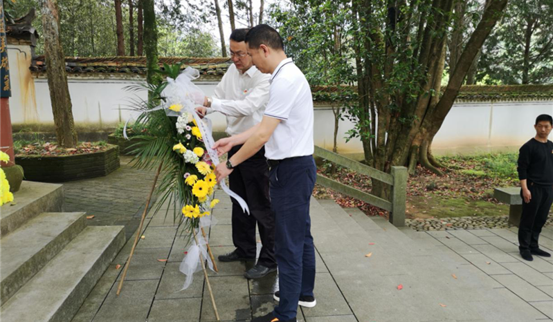 全体党员首先到粟裕将军陵园进行祭扫仪式,大家在纪念碑前聆听粟裕将军生平事迹,进献花篮,重温入党誓词。