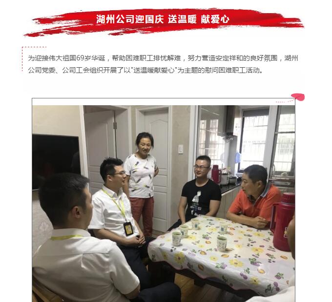 湖州公司迎国庆 送温暖 献爱心