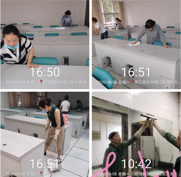不放过任何一个角落,认真细致完成保洁拓荒工作,只为给校内老师和学员们营造一个舒适的办公、学习环境。