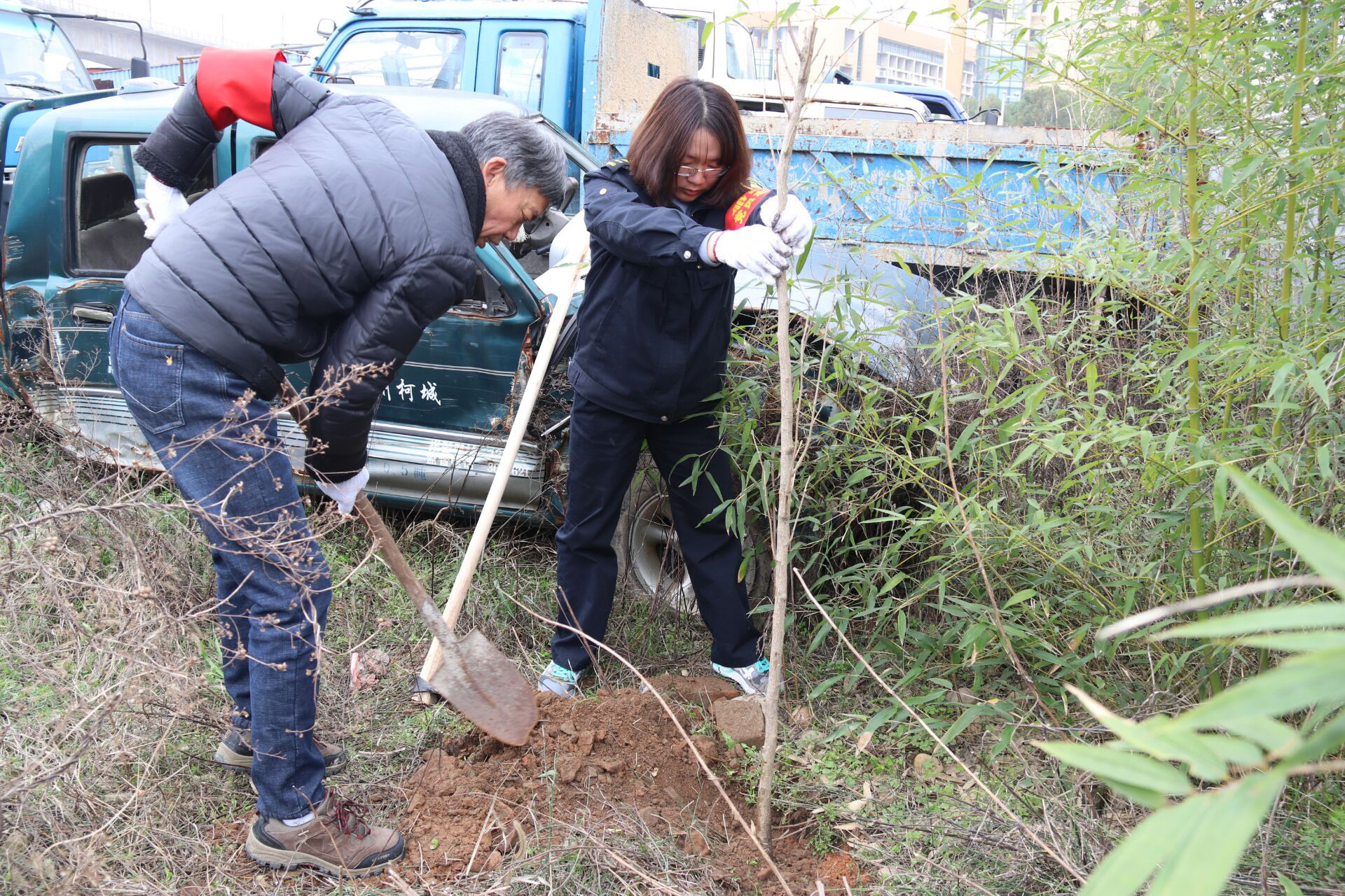 综合管理党支部组成的义务植树队,或松土挖坑、栽插扶苗,或回填夯实,充分发扬了团结、互助、友爱的精神,认认真真地种好每棵树苗,现场呈现出一派生机盎然的景象。