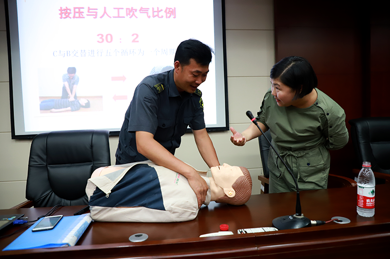 公司根据实际,分批次对各部门、大队及17个中队进行全员普及。此次讲座内容包括常见突发意外事件现场急救知识(人工呼吸、胸外按压等);现代职业病的预防及改善(肩周炎、颈椎病、腰肌劳损、静脉曲张等);慢性疾病预防(高血压、糖尿病等)。采取实体模拟、互动交流方式,将健康知识引向深入,并现场体验中医针灸疗法的功效。讲师风趣幽默的讲解引来了现场阵阵掌声。