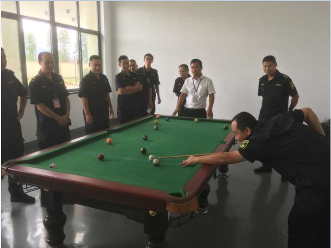 公司临海押运大队活动现场,大家围坐在一起吃水果、品月饼,时不时的有队员自告奋勇上台高歌一曲,台下的队员则配合的哼着调子、打着节拍,气氛分外融洽、好不热闹。茶话会后当然得运动起来啦,篮球趣味投篮比赛、台球“枪王”争霸赛等竞技类游戏同样精彩缤纷,队员们使出浑身解数,不断有人喊“进球啦”,现场一片欢呼雀跃。