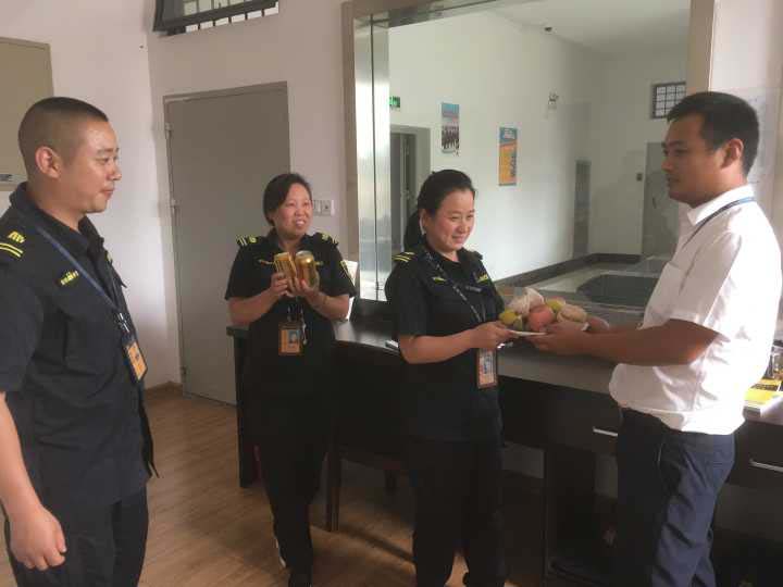 节日期间,大队领导来到监控室和守库室,慰问因坚守岗位不能参加活动的值班队员,并送上水果、月饼和节日祝福。