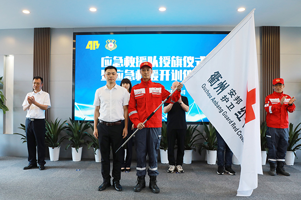 携手公益,共建共享!衢州星辉游戏和衢州市先锋红十字应急救援队举行签约授旗仪式暨开训仪式