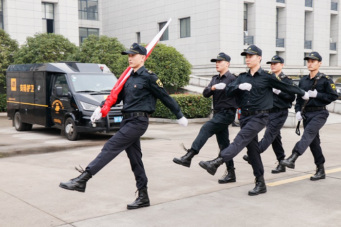 红旗猎猎,方阵整齐。在雄壮的国歌声中,护卫队员们精神抖擞、神情专注,再次深刻感悟红船畔金融卫士的初心使命和责任担当。