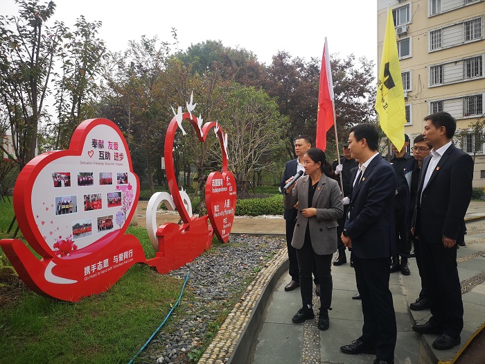 仪式结束后,公司领导班子和队员们来到嘉兴市城市基层党建示范社区烟雨社区参观学习。在“守护红船”活动中,社区志愿者每天傍晚从社区集合出发开展隐患排查、劝导服务等夜巡,成为守护红船中一颗亮丽的夜明珠。同时,作为嘉兴市城市基层党建示范园,小区以“大爱先锋园”、“自治红枫园”、“敬老休闲园”三大园为主线,强化资源整合、创新治理模式,形成基层社会治理线上线下一张网,党群凝心聚力,不断提升居民的幸福感。