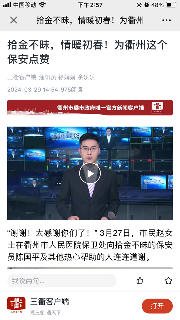 近日,这件暖心好事刷屏朋友圈,衢州新闻联播、三衢客户端等媒体也进行了宣传报道。事情要从3月25日说起……