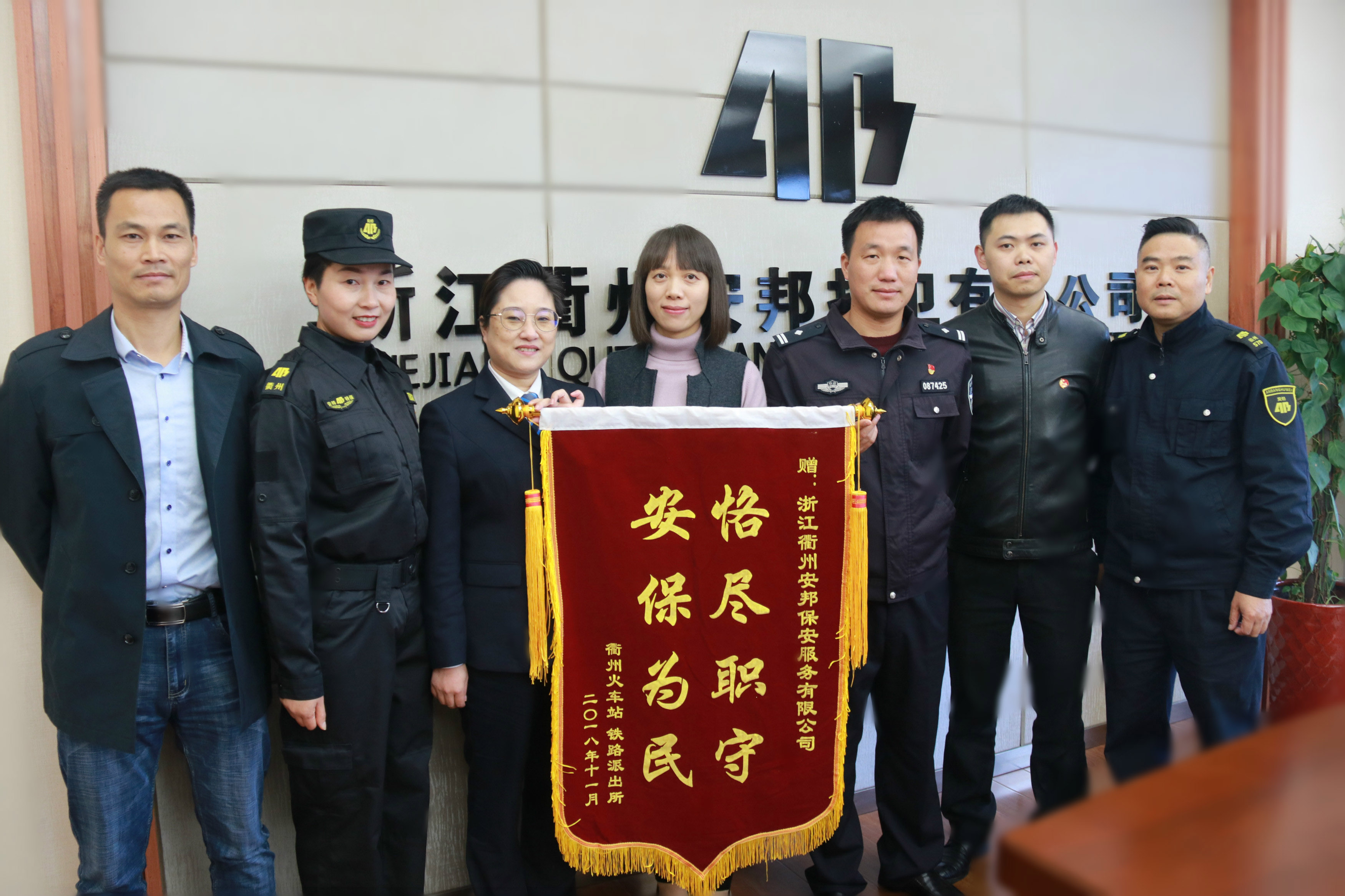 2018年11月13日,衢州火车站戚海强书记、丰美菊副站长,铁路派出所吴国荣副所长一行将一面写着“恪尽职守 安保为民”的锦旗送到浙江衢州星辉保安服务有限公司,对星辉保安优质、高效、热情的服务表示感谢。