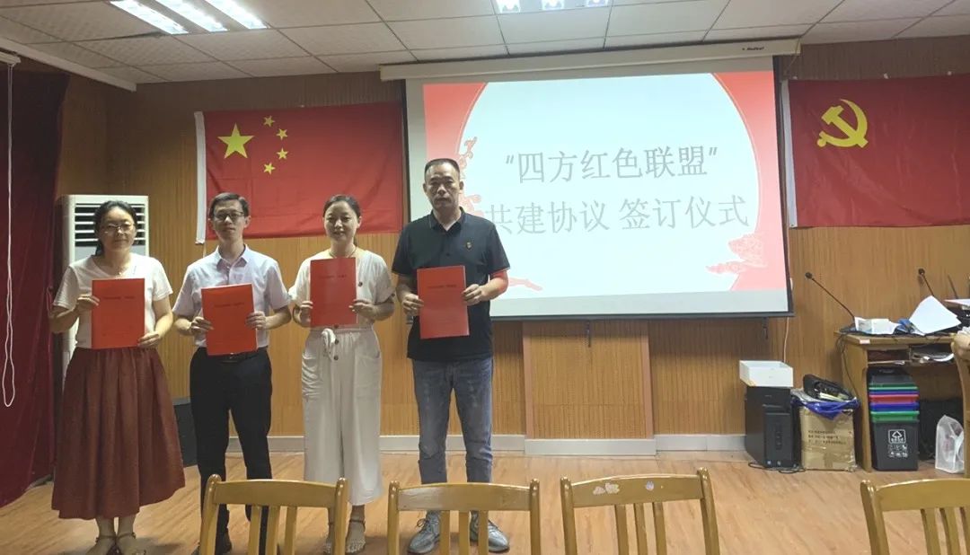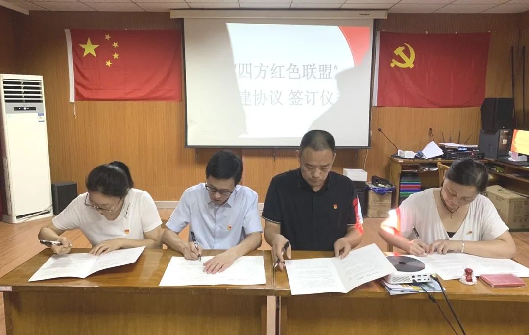 在与会人员的共同见证下,四家基层党组织代表共同签订了“四方红色联盟”共建协议,明确了目标任务、共建内容、共建要求、保障机制。四方代表一致表示,“四方红色联盟”本着“围绕中心、服务大局、优势互补、联创共赢”的原则,立足四方实际和特点,有效整合四方在党建、人力、智力、文化、信息、阵地等方面资源优势,在合作中凝聚起项目党建力量,顺利推进项目建设,更好地推动党建机制创新,激发组织活力,展现党建风采。