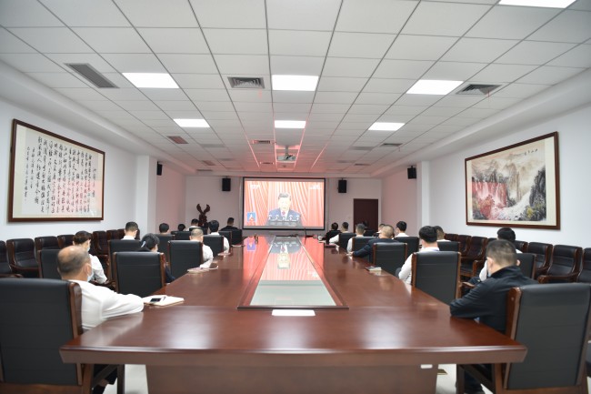 因疫情防控工作需要,结合工作时间情况,宁波公司设置江北基地、保安公司、慈余基地、宁象基地等9个分会场,共130名党员干部集中观看。其余外线驻点中队及车组通过电脑、手机、电视、广播等多种方式收看收听直播。