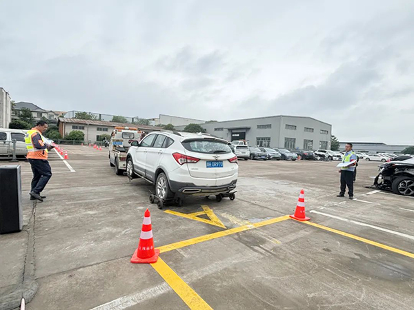 本次技能比武以“理论笔试+技能实操”的形式开展,旨在全方位检验施救人员的专业技能与理论知识。理论笔试部分基本涵盖国家交通法规、消防安全知识、公司规章制度等重要内容。实操考核环节,12名施救员需在限定时间内,迅速启动位于10号车位的施救车辆,精准驶向宽度3米、长度6米的A库,执行车辆拖移作业,并严格按照预定路线将车辆安全驶回A库,顺利完成被拖移车辆的放置。这一系列的实操考核,不仅考验了施救员的驾驶技能与应急反应能力,更彰显了施救员在复杂环境下的综合施救水平。