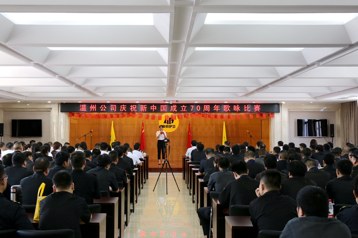 8月27日下午,温州公司庆祝新中国成立70周年歌咏比赛在金融守押中心行政楼多功能厅激情上演,公司领导、各支部书记、全体行政人员和部分员工等200余人等到场观看比赛。