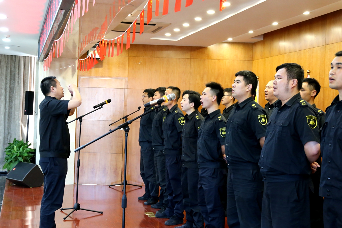 来自公司各党支部组成的10支参赛队轮番上台演唱,用一首首慷慨激昂的经典红歌表达对祖国无限的热爱,《我爱你中国》《团结就是力量》《为了谁》……一首首红歌在比赛现场回旋,一个个代表队用精心编排的歌唱节目,诠释内心爱党爱国的心情和干事创业的热情。现场气氛热烈、掌声迭起,参赛人员良好的形象、扎实的唱功,深情表达了对党和祖国母亲的热爱,唱出了今后努力工作、甘于奉献的决心,展示了公司上下不忘初心、砥砺奋进的良好精神风貌。最后,公司领导和各大队、各部门负责人上台合唱《歌唱祖国》,将全场气氛带上高潮。