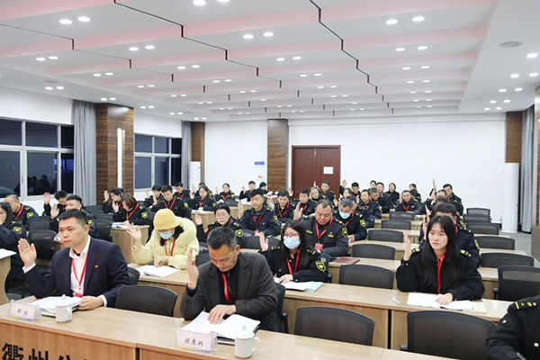 1月15日晚,浙江衢州星辉游戏有限公司工会召开第四届第一次职工代表大会,来自各子公司、部门的46名职工代表参加会议。公司党委书记、董事长、总经理张淑芬出席会议并讲话。会议由总经理助理、工会副主席胡翔主持,大会在激昂的国歌声中拉开序幕。