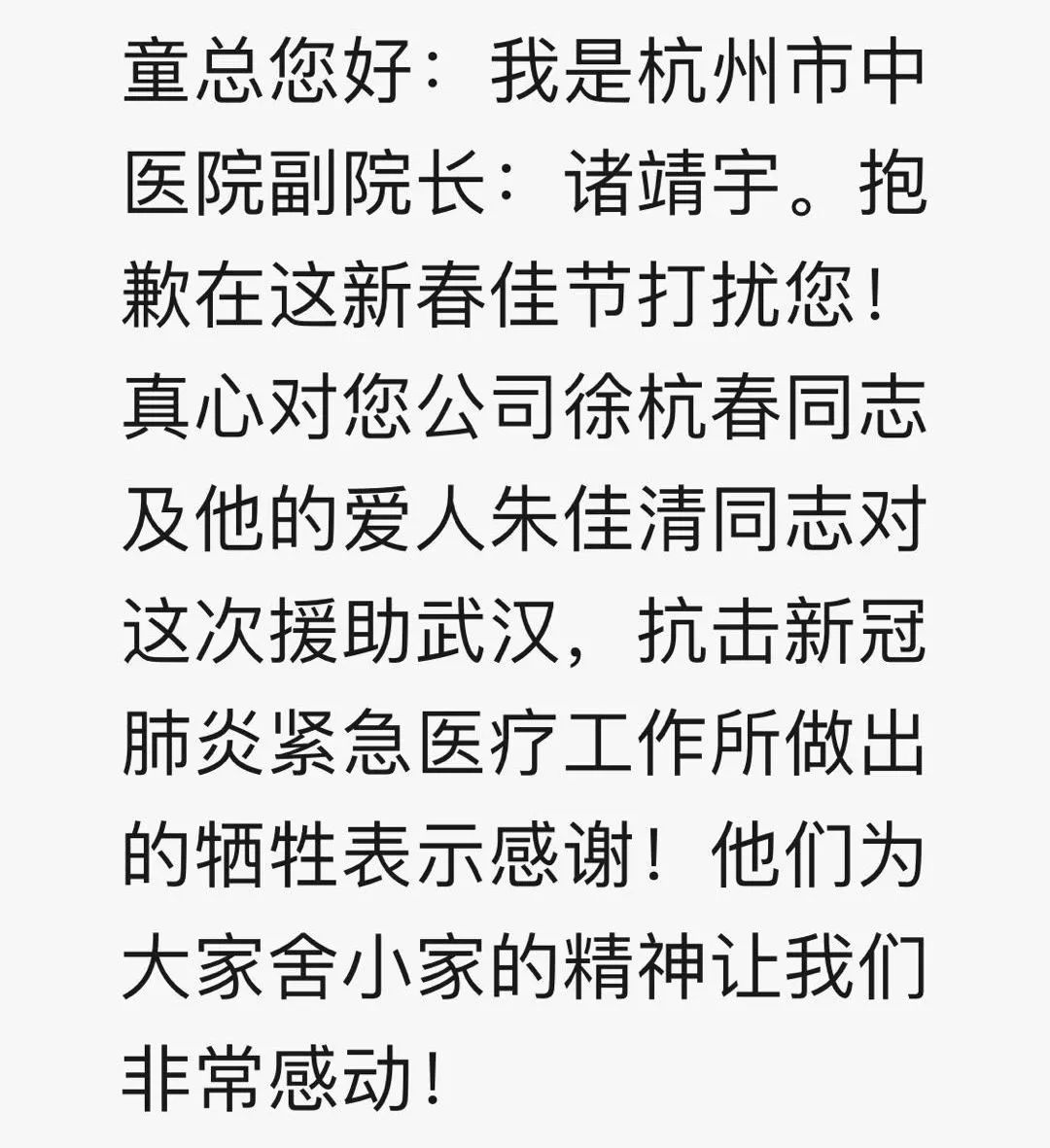 面对亲朋好友及同事的点赞,徐杭春笑着说:“国家有难,匹夫有责,巾帼上前线抗战,作为丈夫当然应该支持她!我在杭州也不能落后,能尽一份力就多尽一份,等她平安归来!”