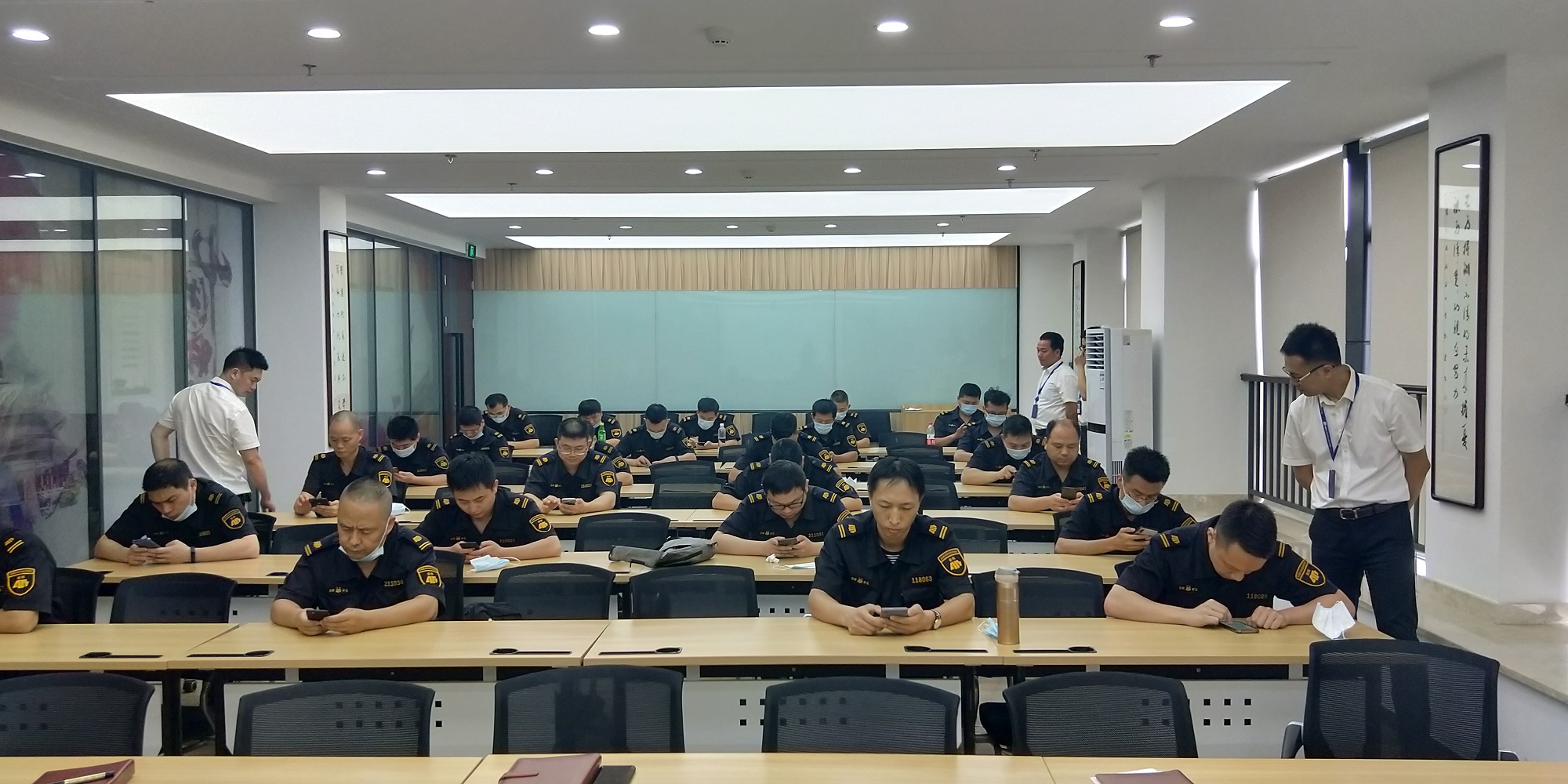 此次安全知识竞赛,以手机微信小程序现场答题的方式展开,答题内容包括《浙江省安全生产条例》、《专职守护押运人员枪支使用管理条例》、《保安武装守护押运服务安全操作指南(试行)》等相关安全生产知识。竞赛过程中,大家严格遵守现场纪律,仔细阅卷、认真答题,力争取得优异成绩。