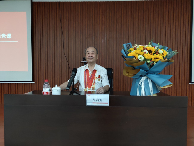 吴昌业向大家讲述了他参加抗美援朝长津湖战役的亲身经历;生动“描绘”了志愿军战士在恶劣作战环境下艰苦卓绝、奋勇杀敌的奋斗历史;详细讲述了抗美援朝战争发生的时代背景、战役发展和最终胜利。吴老所在的第九兵团20军负责穿插包围、26军负责阻击、27军负责攻坚,他满怀激情的发言让在场的每一位党员都仿佛置身于战火硝烟的战场上,无不热血沸腾、无不动容感叹,志愿军舍生忘死的大无畏精神也让部分听众湿红了眼眶。