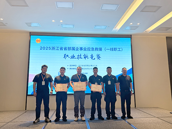 为深入贯彻落实习近平总书记关于安全生产的重要论述和指示批示精神,围绕2025 年浙江省总工会安全生产月“人人讲安全、个个会应急,人人能自救、个个会逃生--查找身边安全隐患”的活动主题,6月23日,由浙江省省部属企事业工会主办,巨化集团有限公司工会承办的2025年浙江省省部属企事业应急救援(一线职工)职业技能竞赛正式开赛。浙江衢州星辉保安服务有限公司派出的三人战队在16支队伍中突出重围,勇夺团体一等奖桂冠! 队员饶虎成、吴志胜分别获个人全能第二名与第六名的耀眼佳绩!