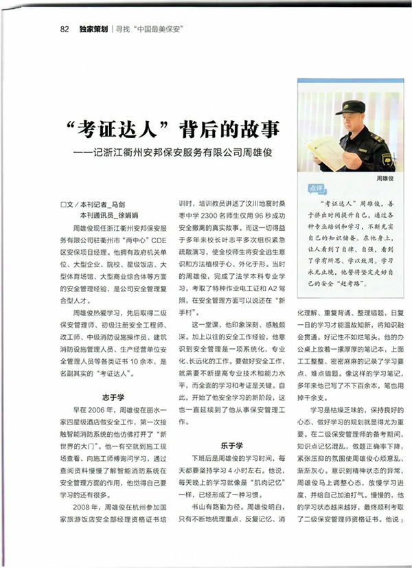 【《中国保安》杂志】星辉保安公司周雄俊:“考证达人”背后的故事