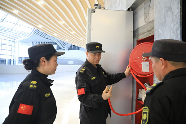“两中心”作为会务中心,自从开馆以来承接了各大党政会议、社会活动,频繁的各类活动对现场临时安保工作是巨大的考验。在衢州市第八届人民代表大会第四次会议、中国人民政治协商会议第八届衢州市委员会第三次会议、第四届衢州人发展大会、2023元宵“金融之夜”烟花盛典暨新春音乐会等10余场大型活动中,周雄俊带队协助保卫处、公安等部门承担主会场的安保任务。根据丰富的安全工作经验和场馆的熟悉度,他认真布点,细化每位队员的工作职责,以热情饱满的精神面貌、雷厉风行的工作作风、专业周到的安保技能,充分展示星辉保安队员过硬的素质和良好的形象。