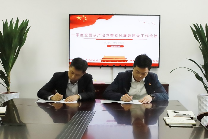 韩光华分别与班子成员、各部门(中心)负责人签订2021年度党建纪检工作责任书和2021年度党建暨党风廉政建设责任书。