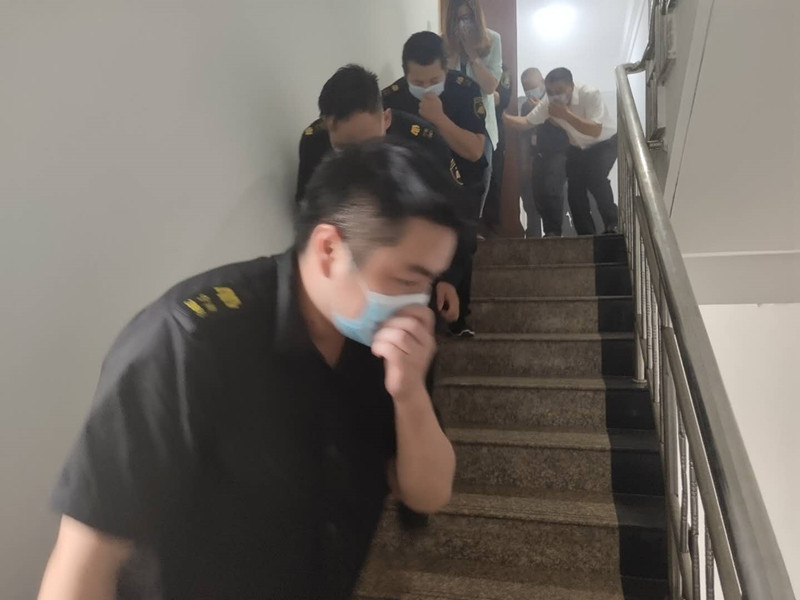 象山大队组织大楼消防逃生演练,演练假想值班室起火,瞬间浓烟滚滚,立即启动应急方案,一边快速灭火,一边有序撤离,全体员工成功体验了一次“极速逃生”。