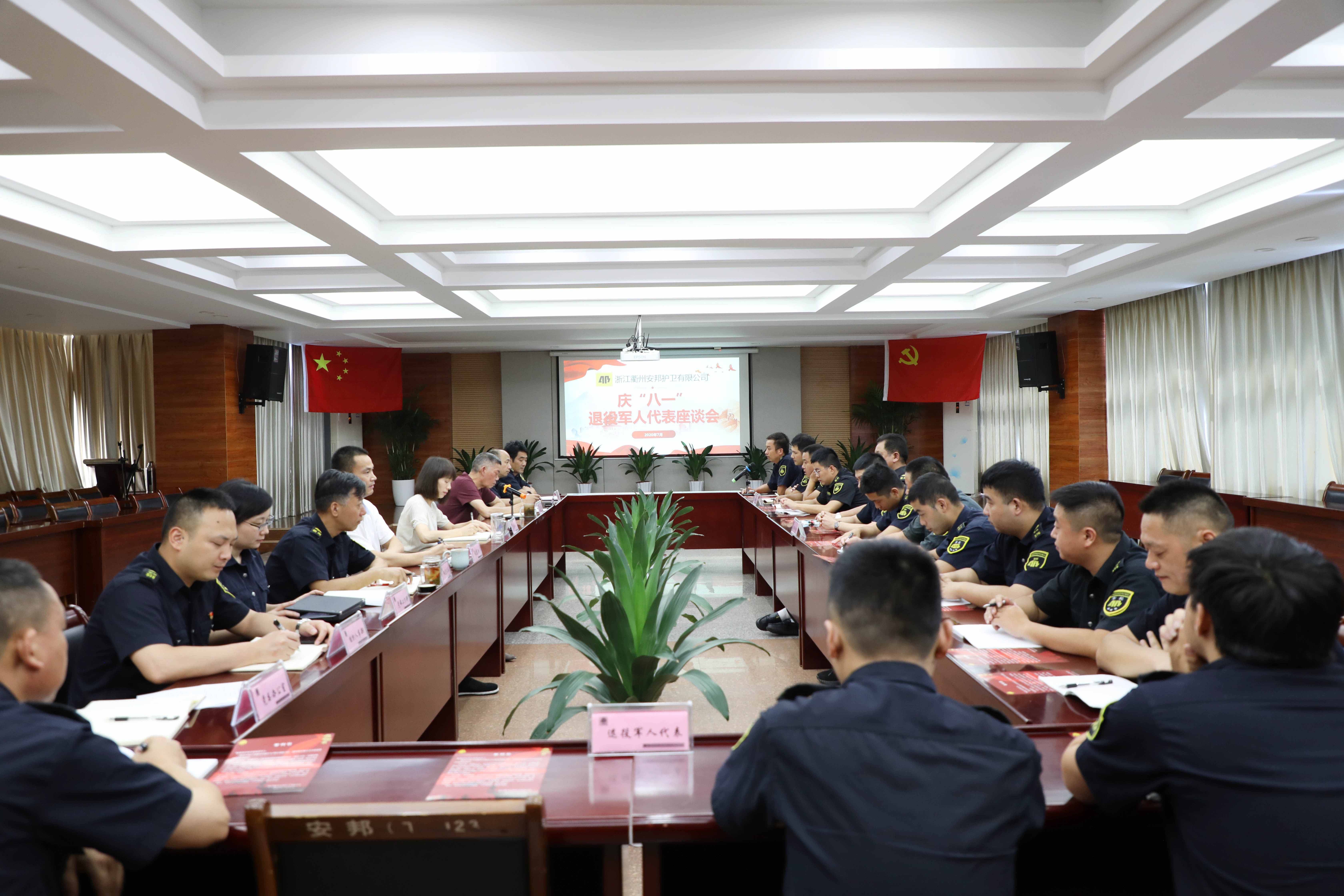 7月31日,浙江衢州星辉游戏有限公司召开庆“八一”退役军人代表座谈会,公司党委班子成员,守押大队、党群工作部、组织人事部、保安公司相关负责人和退役军人代表参加。
