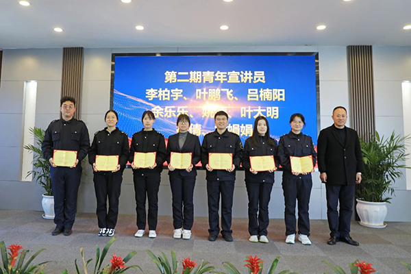党委委员、副总经理郑胜代表宣讲团作2020年-2023年宣讲团总结汇报。公司领导分别为优秀宣讲员颁发荣誉证书,为第二期青年宣讲团成员颁发聘书。