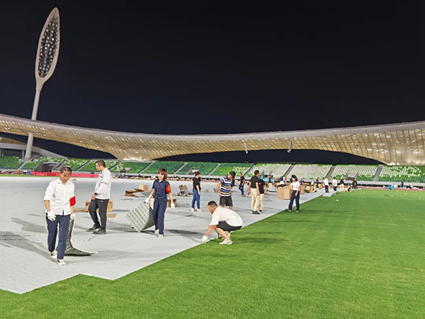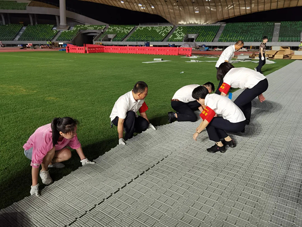 9月30日晚,浙江衢州星辉游戏有限公司党委带领党员、发展对象、积极分子及公司团员青年在衢州市体育中心开展劳动志愿活动,协助衢州珠江文体工作人员在足球场铺设草坪护板,护航浙江省第四届体育大会,用劳动迎接祖国72周年华诞。