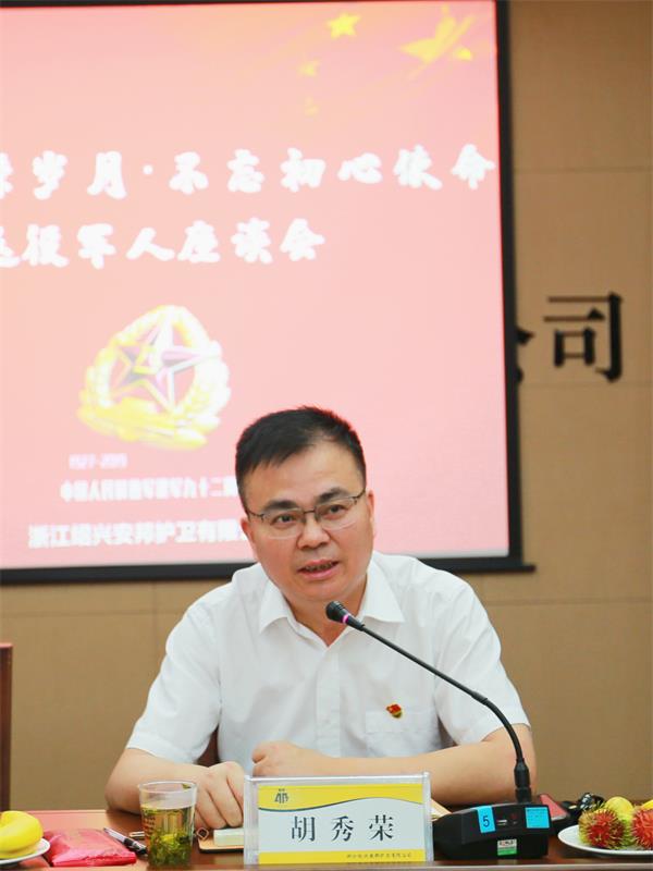 胡秀荣指出,回顾历史,在战争年代,军人抛头颅洒热血,为新中国的建立付出巨大的牺牲;在和平年代,建设和发展时期,他们为守护国家安宁,保证经济社会快速发展,发挥了无可替代的作用。在星辉游戏这十几年的发展中,退役军人为我们公司的业务开展作出巨大贡献,尤其在公司主营业务——守押业务中,退役军人发挥了先锋模范作用,为公司转型升级注入新的动力。退役军人早已成为公司业务发展的主力军,中层干部中有近一半的退伍军人,今后我们将继续重视退役军人,不断完善退役军人优待制度,让退役军人在绍兴星辉更有“家”的感觉。