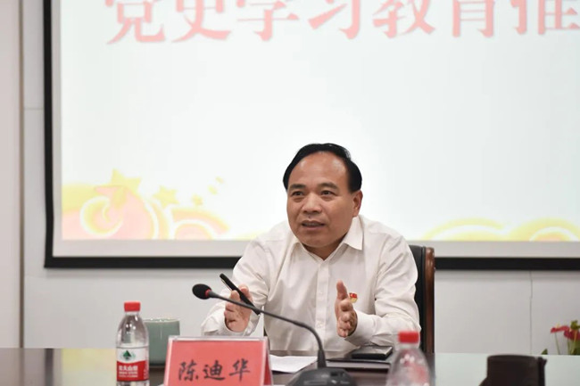 公司党委书记、董事长、总经理陈迪华对各党支部前阶段党史学习教育工作开展情况进行了点评,认为在党史学习教育中规定动作到位,自选动作有特色,学习教育活动开展总体情况较好,并对做好下阶段工作提出要求。