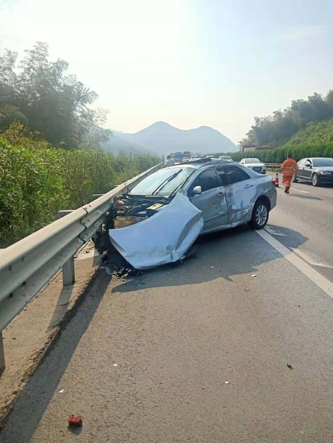 9月3日上午,宁波公司象山分公司党支部书记朱海挺驾车行经甬台温高速塘溪路段时,突然发现一辆货车停在慢车道,一辆卡罗拉私家车撞上了在高速护栏,车头已严重变形。