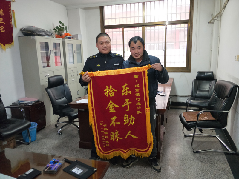 “非常感谢,谢谢。”1月31日下午,义乌市金哥箱包有限公司朱某将“拾金不昧、乐于助人”的锦旗送到金华星辉公司义乌守押大队农商行中队办公室,嘴里还不停地说着感激的话。