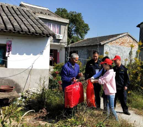 温岭押运大队义工们来到新河镇屿后村,为村里的老人们送上食用油、棉被、被套等慰问品,为他们做好过冬准备。