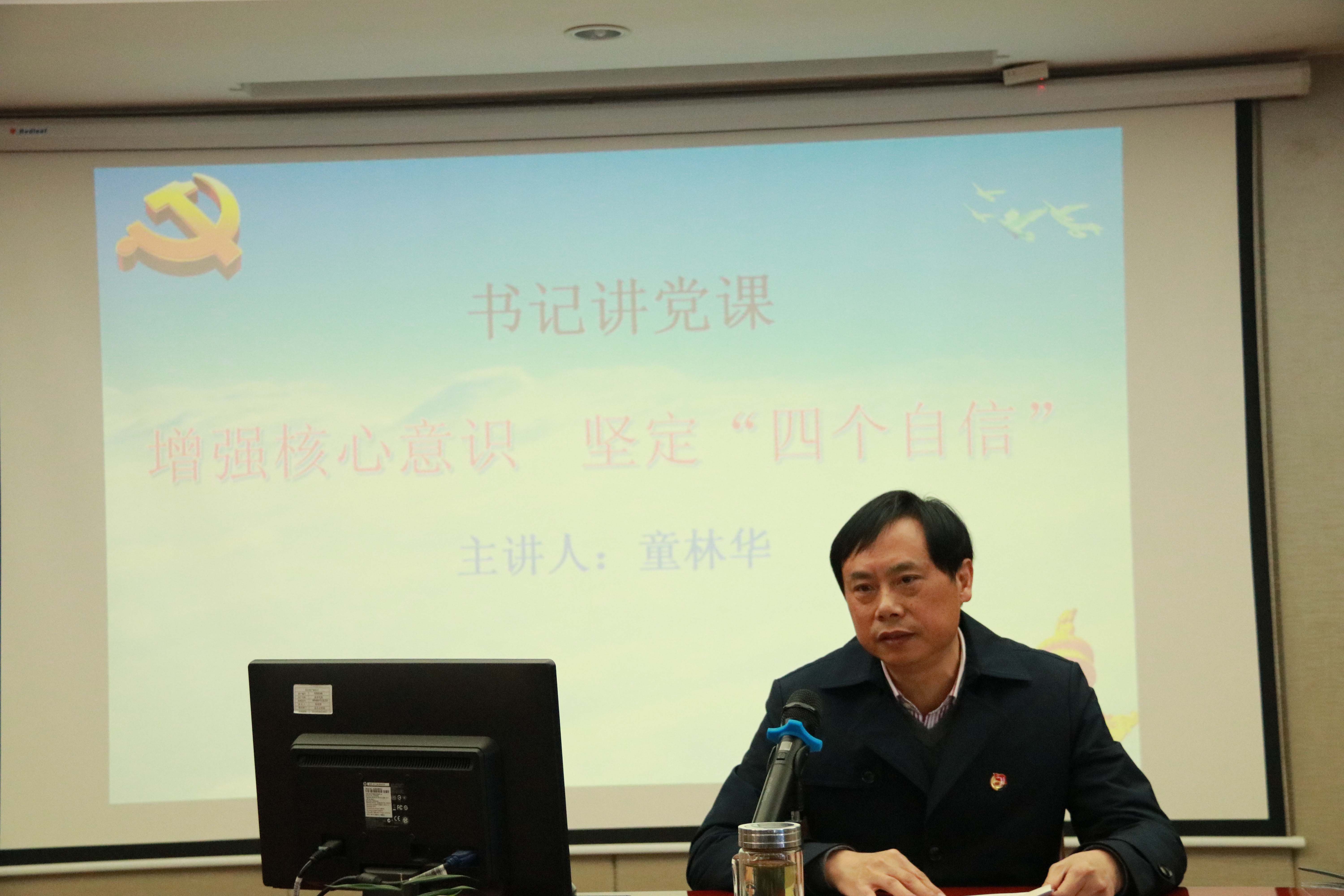 随后,党委书记、董事长兼总经理童林华同志为全体与会人员讲授题为“增强核心意识 坚定四个自信”的专题党课。本次党课旨在深入学习贯彻党的十九大精神,明确新时代对党员干部的要求,切实提升广大党员干部的核心意识与党性修养。
