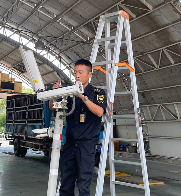 2021年,在一场大暴雨来袭后,场地导视图喷绘掉落、车间顶棚漏水,在同事们的全力协助下,是他冒着大雨爬上架子重新固定和修补,避免了检测设备浸水,保障了检测车间正常运行。