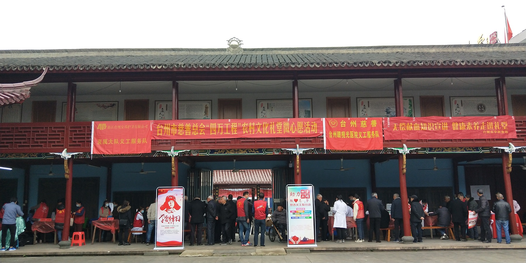 直属押运大队义工服务队联合台州市慈善总会,在章安街道华景村文化礼堂开展“3·5”学雷锋暨“四万工程”农村文化礼堂微心愿活动,为 居民们提供一系列便民服务。