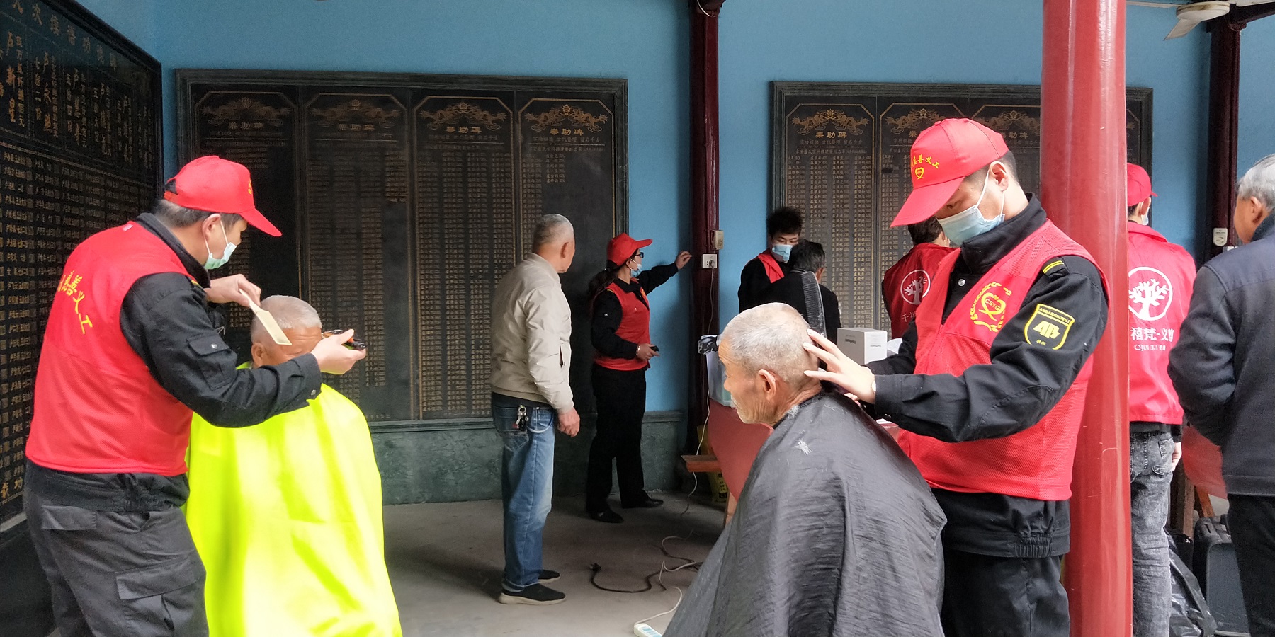温岭押运大队党支部走进温岭太平街道尚书坊文化礼堂开展以“庆建党百年、承雷锋精神”为主题的敬老爱老公益活动,20多名志愿者为老人们洗头、理发,还为他们准备台州特色美食。
