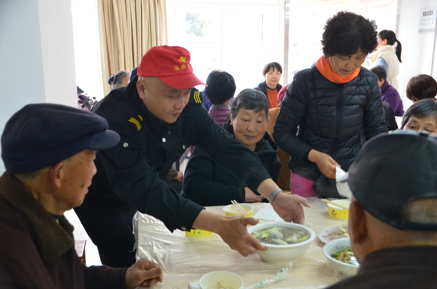 “平常都是我做菜给年轻人吃,想不到今天让年轻人为我们服务,还从未享受过这等服务,真是太感谢了”老人笑得合不拢嘴。老人们纷纷表示,平时看到银行门口的星辉人员总觉得威武严肃、不敢靠近,想不到他们还能“上得厅堂下得厨房“,有和善可亲的一面。