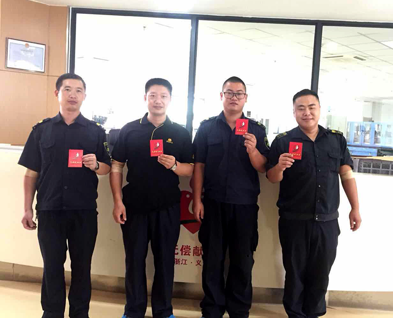7月30日上午,金华星辉公司义乌守押大队中行中队4名退伍军人,到义乌市中心血站献血1600毫升,用自己的满腔“热血”迎接“八一”建军节。
